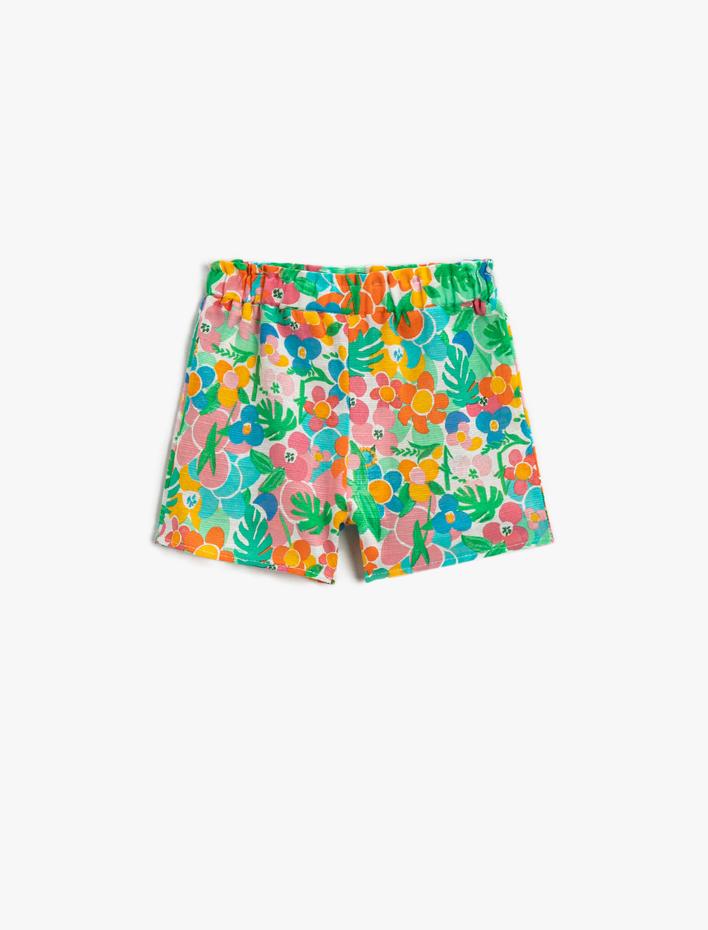 Kız Bebek Çiçekli Şort Beli Lastikli Diz Üstü Pamuklu