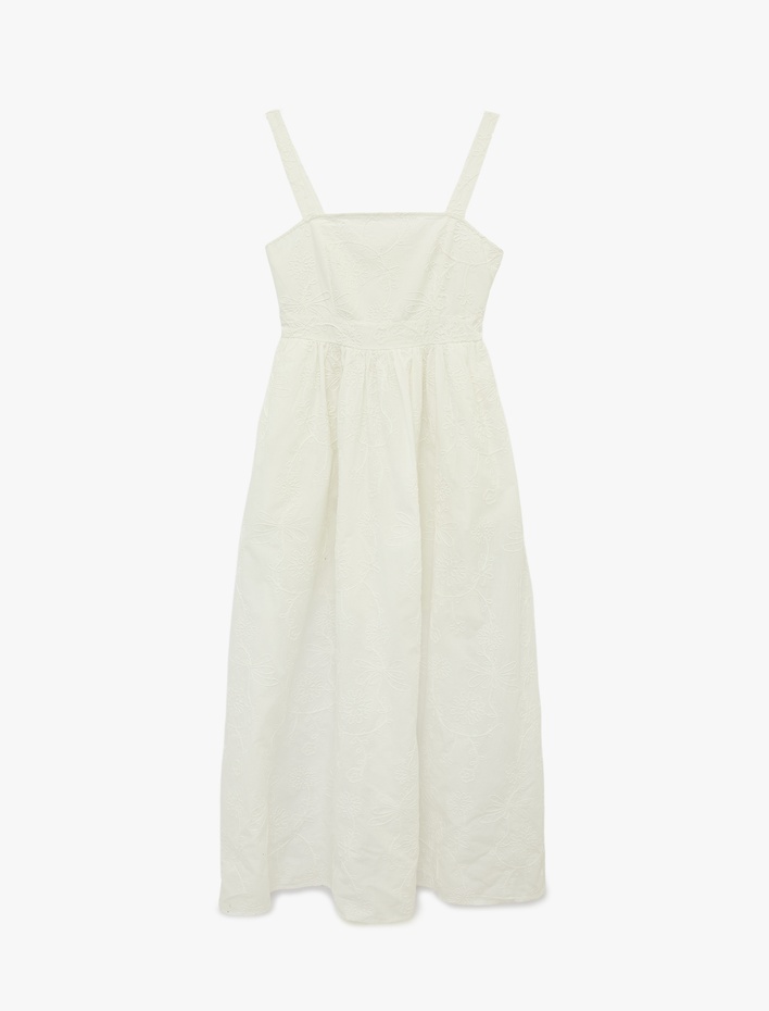 Pamuklu Floral Dokulu Midi Boy Nakışlı Brodeli Askılı Elbise