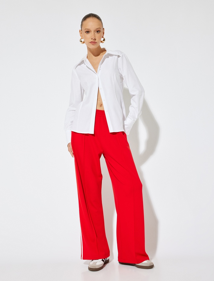 Uzun Kollu Crop Gömlek Klasik Yaka Kuşgözü Detaylı Bağcıklı Slim Fit