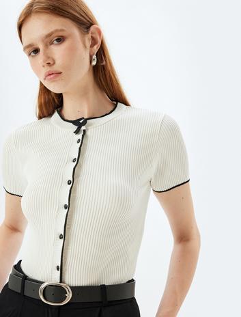 Fiyonk Detaylı Hırka Çıtçıt Düğmeli Kısa Kollu Bisiklet Yaka Slim Fit Sepete Ekle