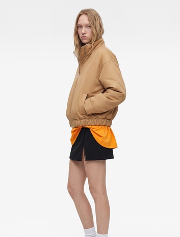 Cep Detaylı Fermuarlı Büzgülü Dik Yaka Mevsimlik Ceket