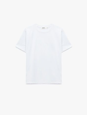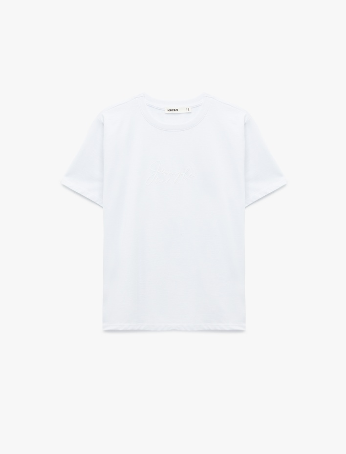 Pamuklu Kısa Kollu Bisiklet Yaka Kabartma Baskı Detaylı Tişört Sepete Ekle