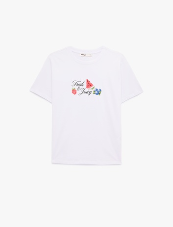 { "id": "8684846955278", "name": "Pamuklu Kısa Kollu Bisiklet Yaka Karpuz ve Çilek Baskılı Tişört", "taxonomy":["CITY FASHION","CITY FASHION","WOMEN","JERSEY","TSHIRT SS"], "currency": "TRY", "unit_price": 399.99 , "unit_sale_price": 399.99 , "url": "https://www.koton.com/pamuklu-kisa-kollu-bisiklet-yaka-karpuz-ve-cilek-baskili-tisort-beyaz-4106539-1/", "stock": 224, "color": "BEYAZ", "size": "L", "product_image_url": "https://ktnimg2.mncdn.com/products/2026/01/16/3181296/ff54f3ca-0d89-4385-a78b-2593a0cc6c60_size870x1142.jpg" }