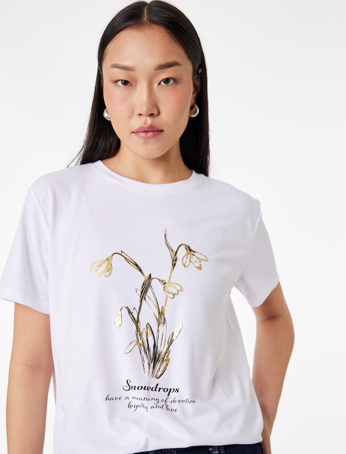 Kısa Kollu Bisiklet Yaka Kardelen Baskılı Tişört Sepete Ekle