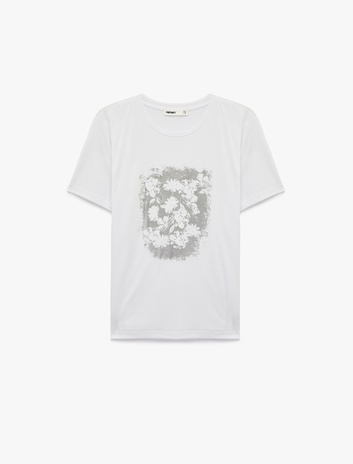 Regular Fit Bisiklet Yaka Kısa Kollu Metalik Baskılı Çiçekli Tişört Sepete Ekle