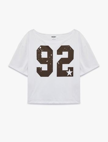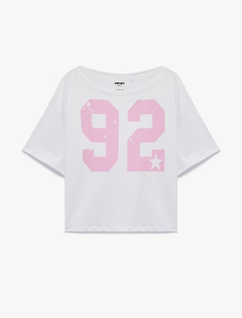 Kısa Kollu Kayık Yaka Pamuklu Baskılı Oversize Spor Tişört Sepete Ekle
