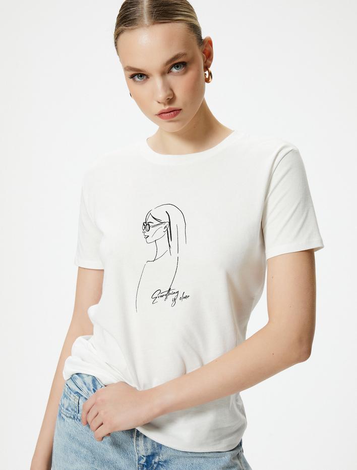 Baskılı Tişört Kısa Kollu Bisiklet Yaka Pamuklu