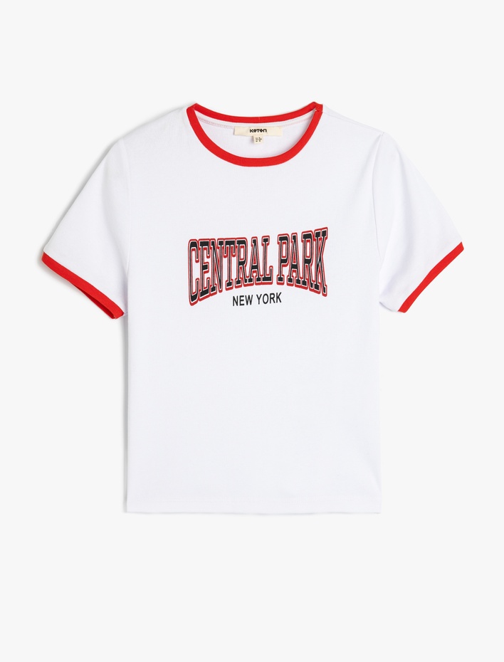 Pamuklu Bisiklet Yaka Kısa Kollu Baskılı Tişört