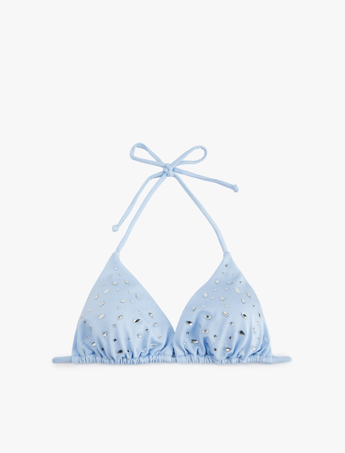 Boyundan Bağlamalı İpli Üçgen Taşlı Bikini Üstü Sepete Ekle