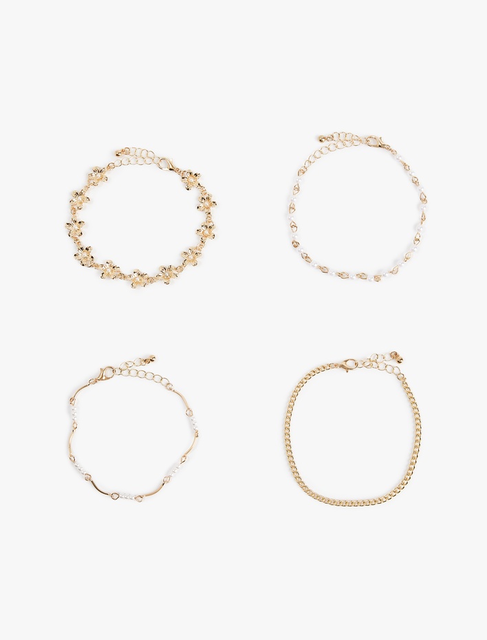 Boncuk Detaylı 4'lü Zincir Bileklik Seti Sepete Ekle