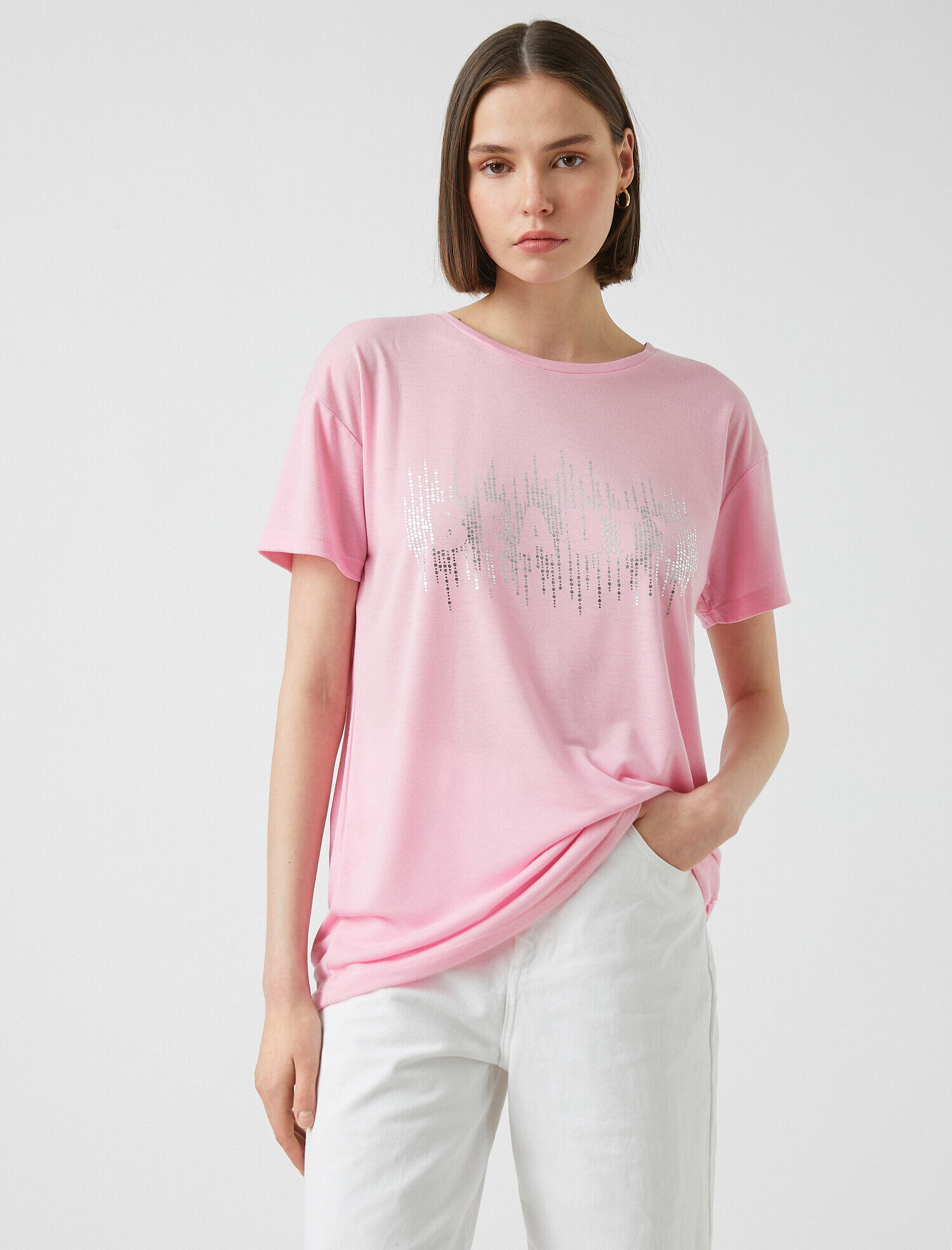 Bisiklet Yaka, Kısa Kollu, Baskılı Tişört.