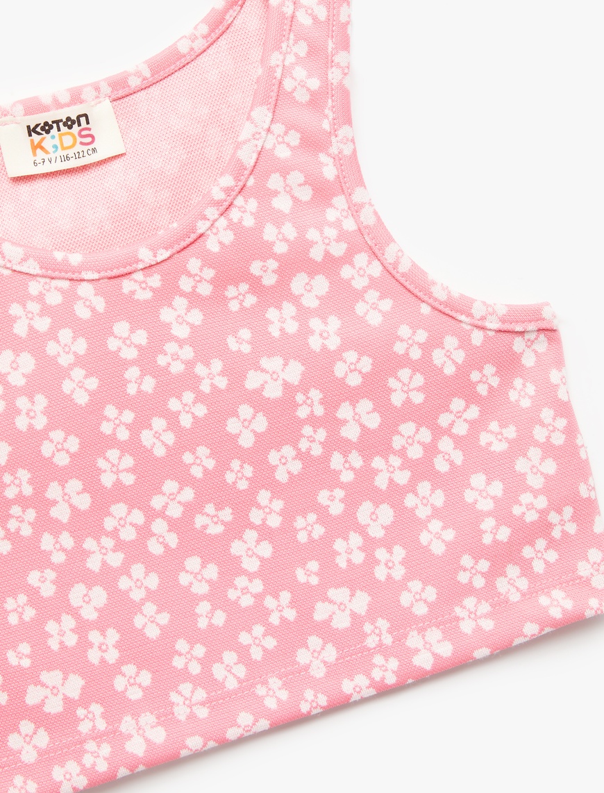 Kız Çocuk Bisiklet Yaka Kolsuz Çiçek Desenli Crop Atlet