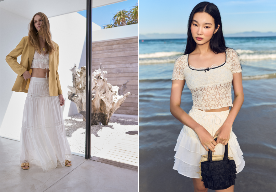 Mini, midi ya da ayak bileklerine uzanan maksi boylar... Her biri farklı bir ruh hali, farklı bir yaz hikâyesi var. Kimi kloş formda dökülerek hareket ederken, kimi katlı fırfırlarla hacim kazanıyor. Beyaz etek bu haliyle yalnızca bir giyim parçası değil, yazın hafifliğini ve duyusal estetiğini üzerinizde taşımanın bir yolu oluyor.