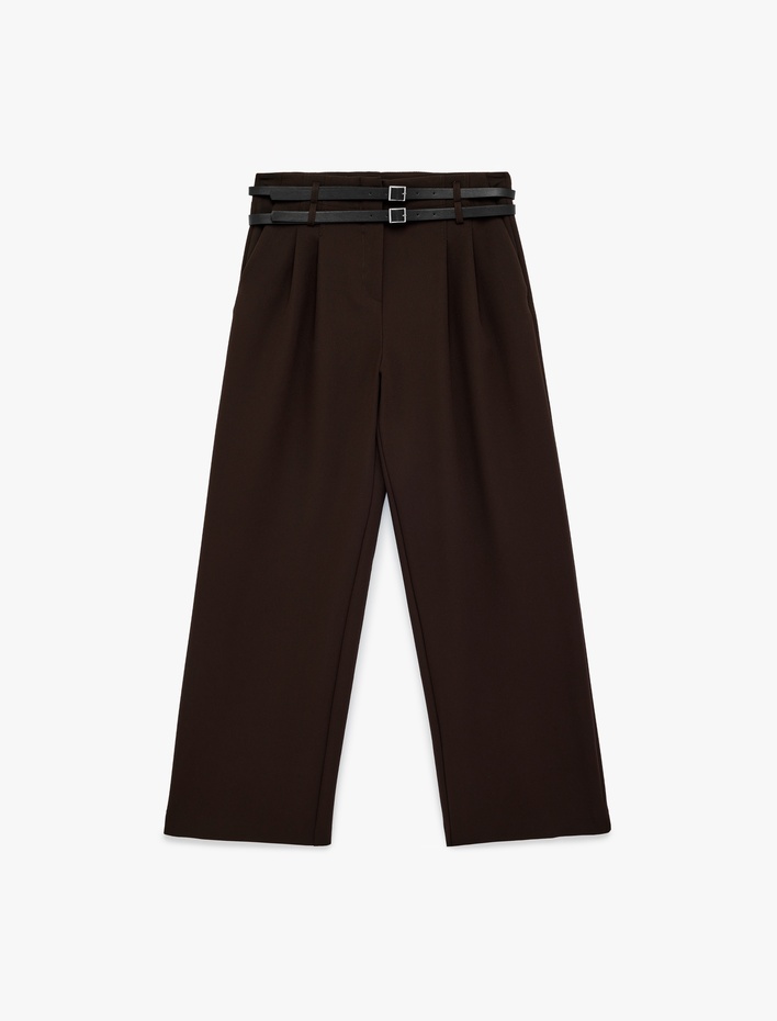 Krep Kumaş Cepli Pile Detaylı Bol Paça Kemerli Pantolon Sepete Ekle
