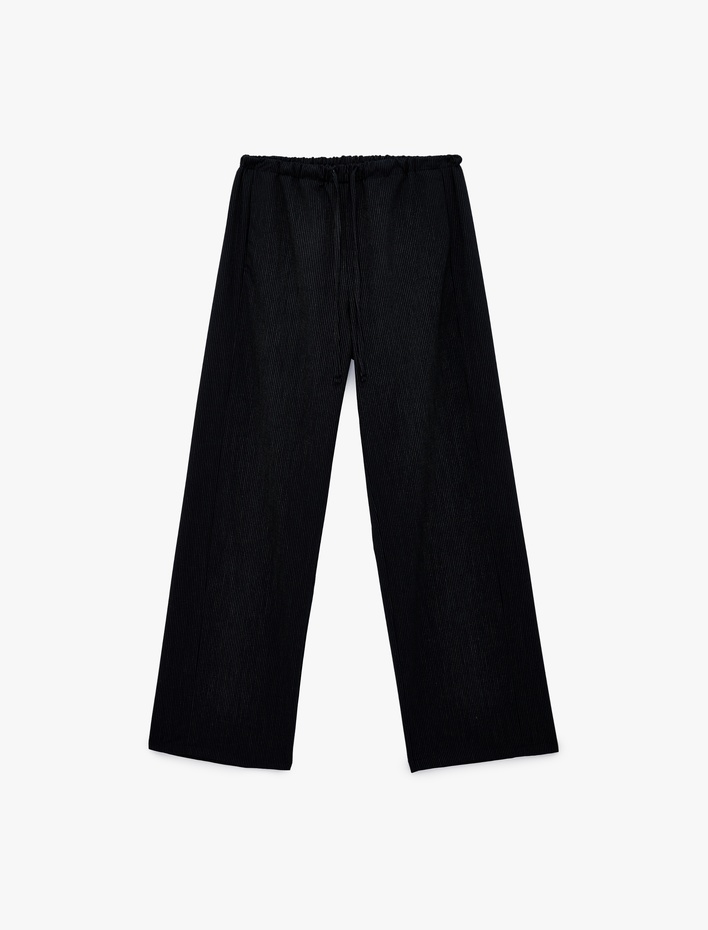 Viskon Karışımlı Beli Bağcıklı Düz Bol Paça Pantolon
