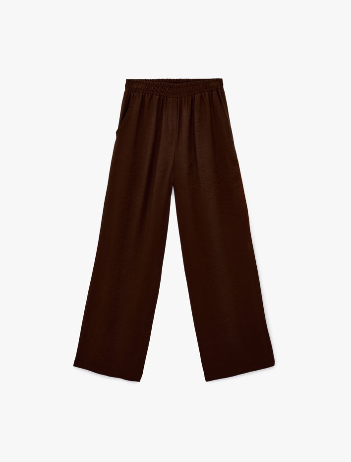 Modal Kumaş Beli Lastikli Cepli Düz Bol Paça Pantolon Sepete Ekle