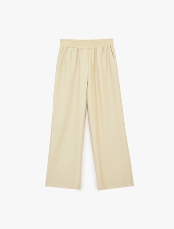 Viskon Kumaş Beli Lastikli Yan Cepli Düz Bol Paça Pantolon