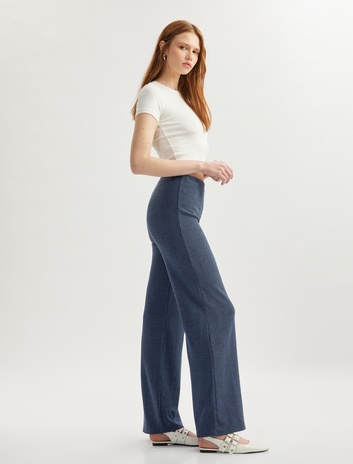 Rahat Kalıp Dokulu Dökümlü Bol Paça Pantolon