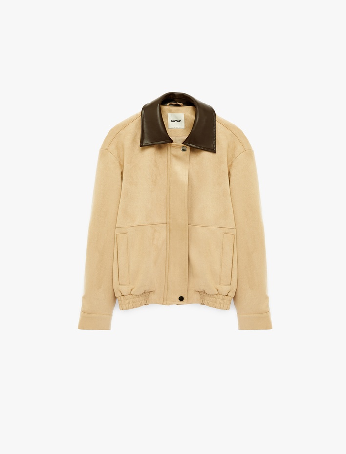 Suni Kürk Yaka Rahat Kalıp Fermuarlı Cep Detaylı Bomber Ceket