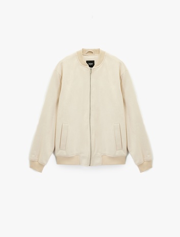 Regular Fit Kolej Yaka Cepli Suni Süet Bomber Ceket Sepete Ekle