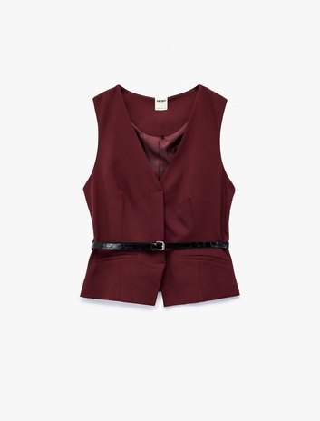 Kemer Detaylı Kolsuz Cepli V Yaka Yelek