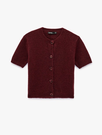 Bisiklet Yaka Düğmeli Kısa Kollu Triko Hırka Sepete Ekle