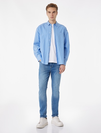 Jean'de moda değişiyor ve Koton erkek jean koleksiyonu ile modaya yön veriyor. Slim fit özelliği ile bedeni nazikçe saran Brad jeans, son yılların trend özelliklerinden dar paçayı da kalıbında bulunduruyor. Normal bel düzeyi ile rahat hareket kabiliyeti sunan tasarım, dizden ayak bileğine kadar hafif daralarak inen kesimi ile konfor vadediyor. Dar paça sayesinde pantolonlar en dar bot modelleriyle, smart casual ayakkabı tasarımlarıyla ve spor ayakkabılarla rahatlıkla giyilebiliyor. Jean pantolon modelleri arasında dilediğini bulamayan slim fit kesim isterken normal belden de vazgeçmek istemeyenlerin tercihi olan Koton jeans, mavi, siyah, gri ve beyaz gibi pek çok renkte alternatif sunuyor. Yıpratılmış yırtık modeller, klasik düz tasarımlar, beyazlatılmış alternatifler farklı zevklerdeki erkeklerin erkek jean pantolon arayışına son veriyor. Hem yazın hem de kışın giyilebilecek erkek jean pantolon ürünleri, tişörtlerle, gömlekler ve sweatshirtlerle rahatlıkla kombinlenebiliyor. Denim on denim modasına uymak isteyen erkekler pantolonları denim gömlek ve ceketlerle bir arada kullanarak stillerini gözler önüne seriyor. Vücudunuza en uygun, en fit tasarım Brad jeans modeli ile Koton'da yer alıyor.