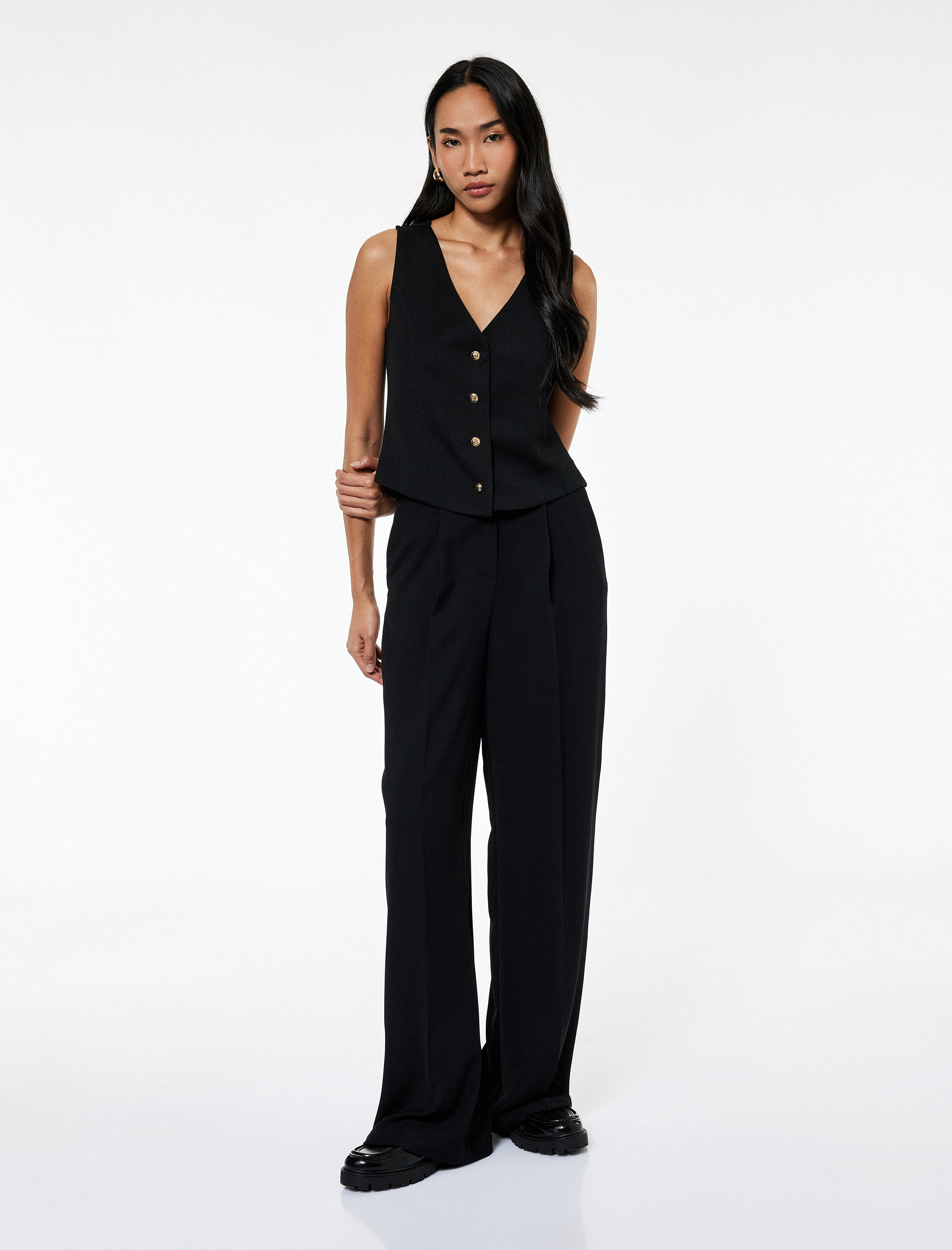 Bürümcük Kumaş Dokulu V Yaka Düğmeli Yelek