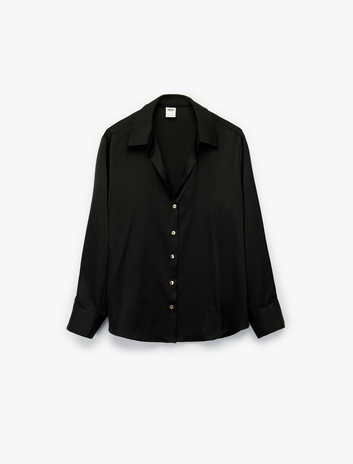 Gold Düğme Detaylı Uzun Kollu Saten Gömlek Sepete Ekle