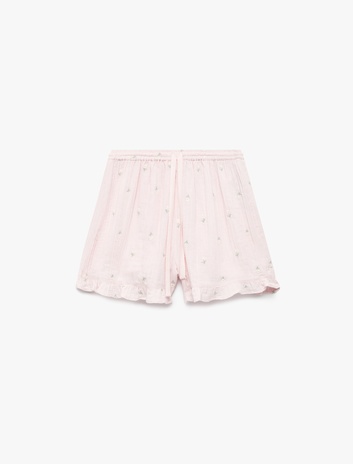 Pamuklu Rahat Kalıp Çiçek İşleme Detaylı Mini Şort Pijama Altı