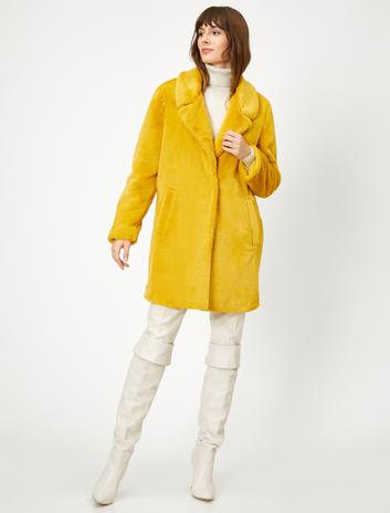 Peluş Oversize Mont Dik Yaka Fermuarlı
