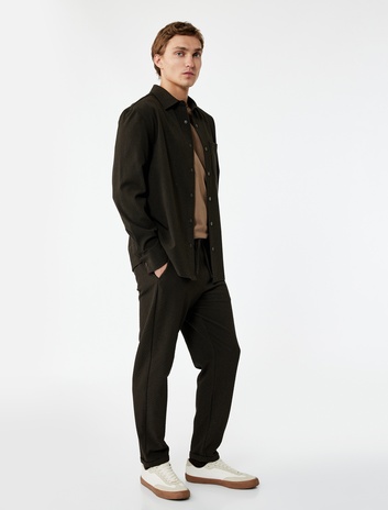 Viskon Karışımlı Cep Detaylı Dokulu Beli Bağcıklı Pantolon