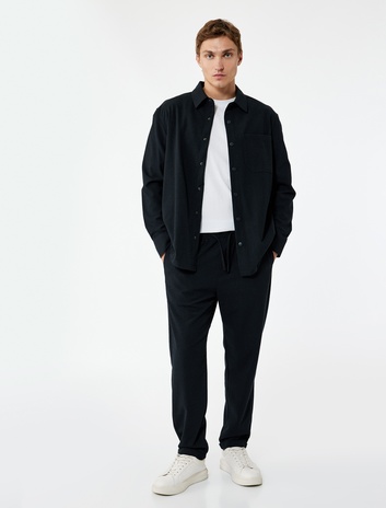 Viskon Karışımlı Cep Detaylı Dokulu Beli Bağcıklı Pantolon Sepete Ekle