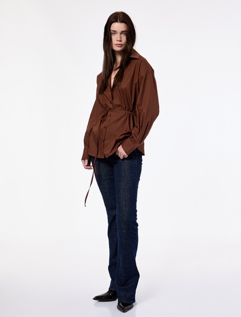 Modal Kumaş Uzun Kollu Beli Bağlama Detaylı Oversize Gömlek