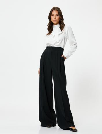 Cepli Pile Detaylı Yüksek Bel Palazzo Pantolon