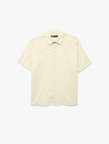 Regular Fit Kısa Kollu Dokulu Apaş Yaka Gömlek