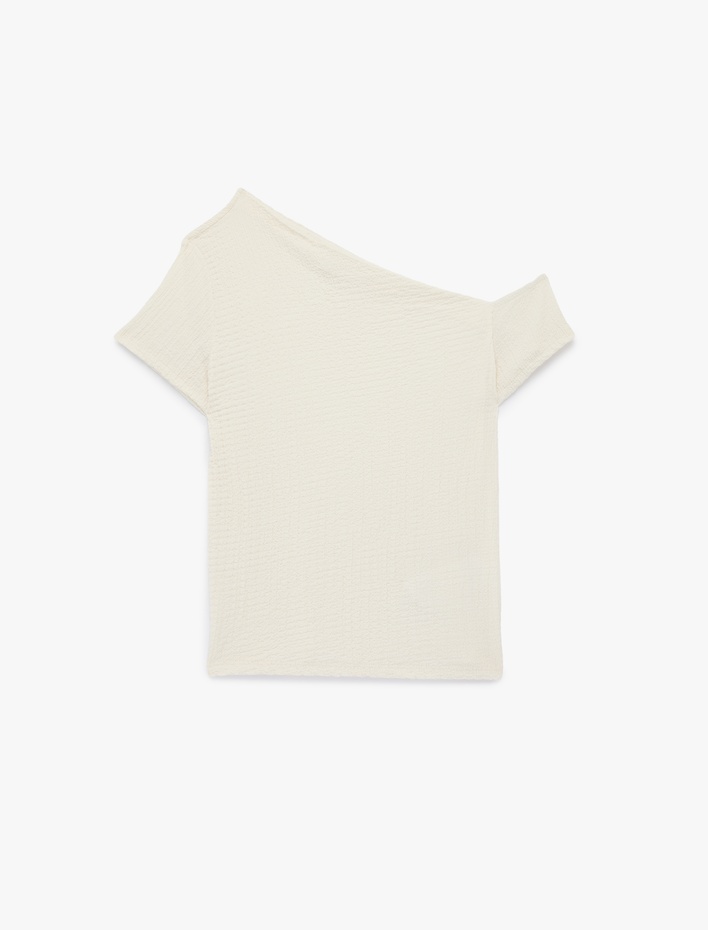Bürümcük Kumaş Slim Fit Kısa Kollu Asimetrik Kesim Tek Omuz Bluz Sepete Ekle