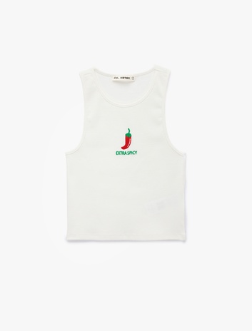 Bisiklet Yaka Pamuklu Nakış Detaylı Kolsuz Atlet Sepete Ekle