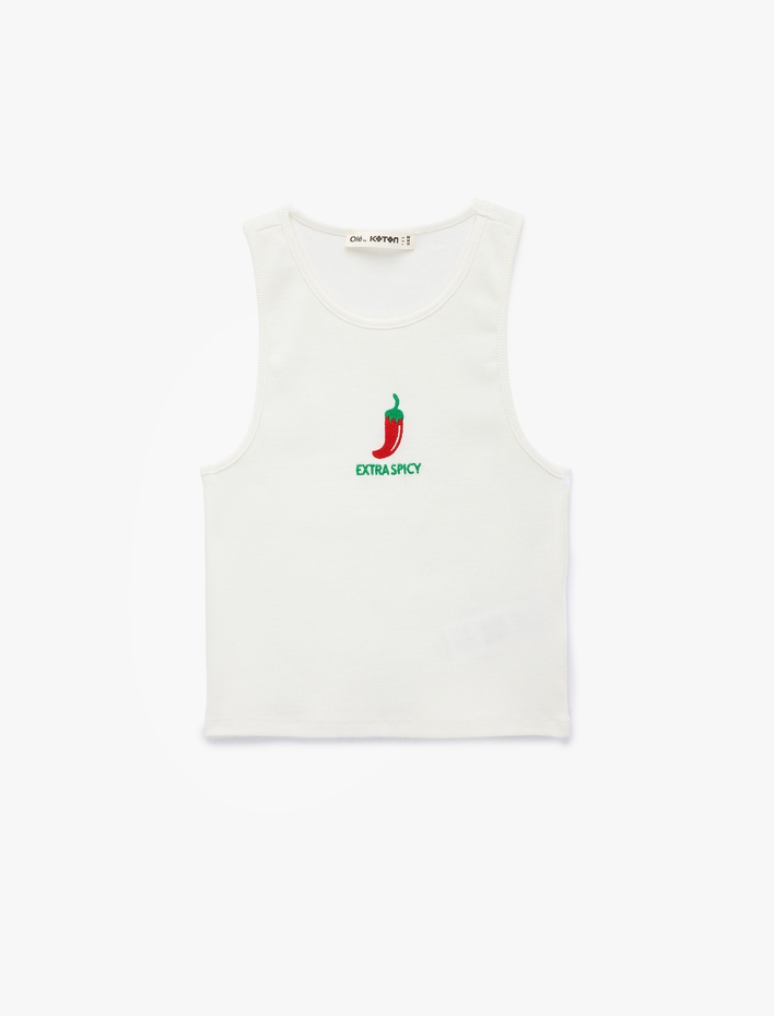 Bisiklet Yaka Pamuklu Nakış Detaylı Kolsuz Atlet
