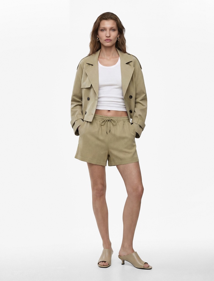 Modal Kupro Kumaş Beli Bağcıklı Cepli Regular Mini Şort