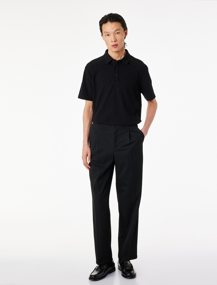 Regular Fit Kısa Kollu Dokulu Basic Polo Yaka Tişört