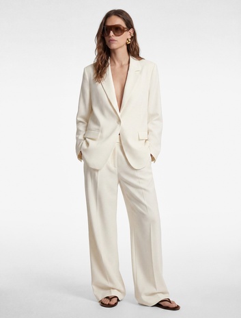 Rahat Kalıp Astarlı Uzun Kollu Cepli Keten Blazer Ceket
