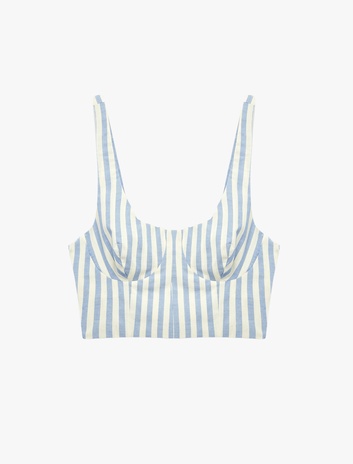 Keten Karışımlı Slim Fit U Yaka Askılı Çizgili Crop Büstiyer