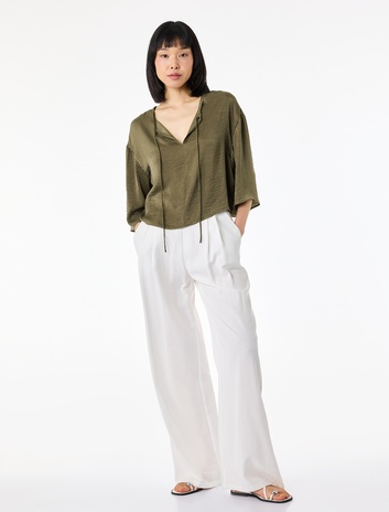 Rahat Kalıp Paçaları Bağlama Detaylı Şalvar Pantolon Sepete Ekle