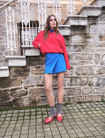 Kruvaze Asimetrik Kesim Mini Şort Etek Sepete Ekle