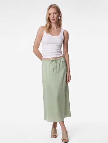 Beli Bağcıklı Kloş Midi Saten Etek Sepete Ekle