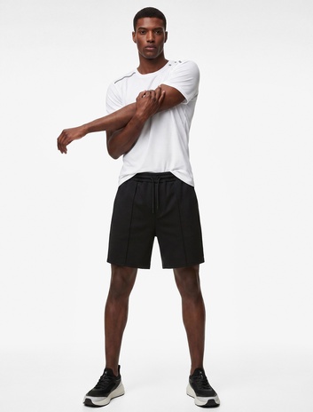 Rahat Kalıp Scuba Kumaş Cepli Nervürlü Beli Bağcıklı Yüksek Bel Spor Şort