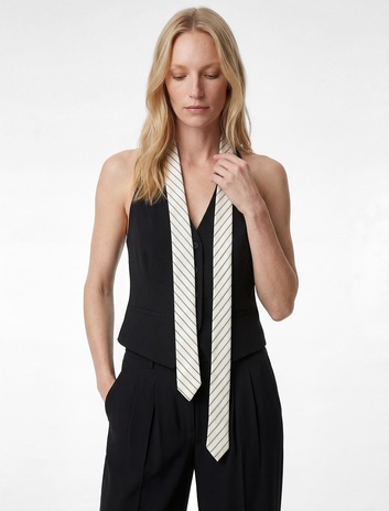 Kravat Detaylı Kolsuz V Yaka Viskon Karışımlı Blazer Yelek