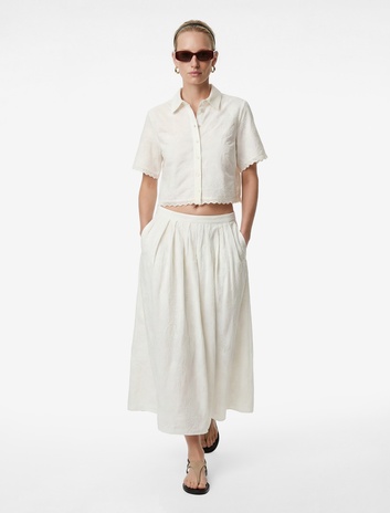 Pamuklu Cepli Pileli Floral Dokulu Nakış Detaylı Brodeli Midi Etek Sepete Ekle