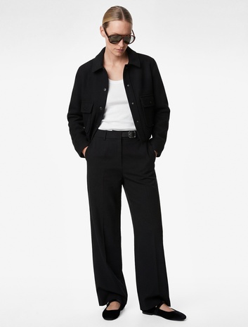 Cepli Yarım Kemer Detaylı Uzun Düz Geniş Paça Kumaş Pantolon Sepete Ekle